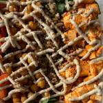 For my lunches this week I prepared the components to quickly assemble a high-protein salad to fuel my busy afternoons. The satisfying combination of the roasted gochujang tofu and sesame chickpeas, the crunch of the crispy quinoa, and the gentle burn of the buldak sunflower seed miso dressing makes this lunch exciting enough to enjoy day after day and nutritious enough to support your success no matter what your long-term goals are.