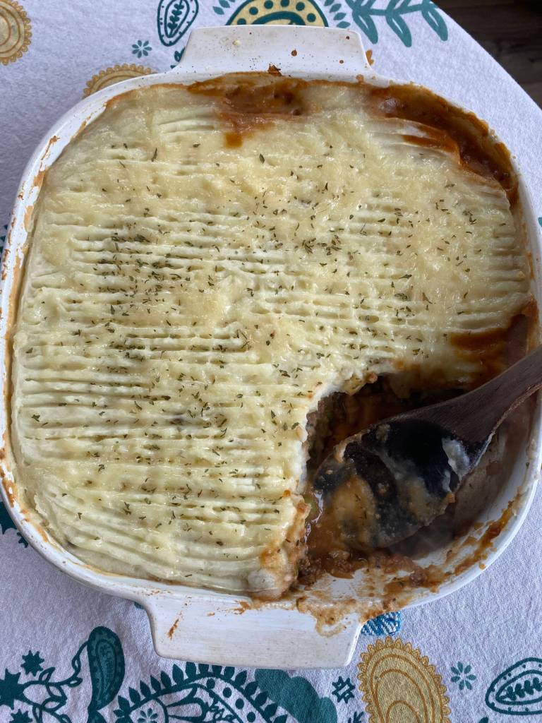 I had a pound of ground turkey to use, so I made a hearty meal for our small but merry band of adventurers. Cottage pie is a comfort meal usually made with ground beef, but I like using turkey in this dish to cut back on some of the calories and fat without sacrificing flavor. My recipe makes enough for supper with plenty of leftovers for elevensies.