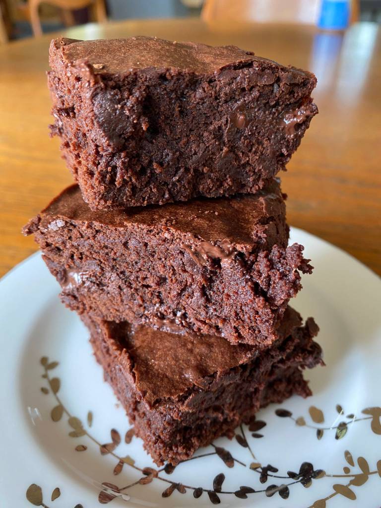 Last week I read my first fan letter. A reader who lives in Washington sent a lovely card with some words of praise and a thoughtful suggestion for another way I can serve the youth in our community. Her handwritten note on a lovely floral card truly made my day and I gushed about it to my family while we roasted sausages on the lakeshore. I made these brownies for dessert that night and I hope you try them, Pat! These classic fudgy brownies are dense and decadent.