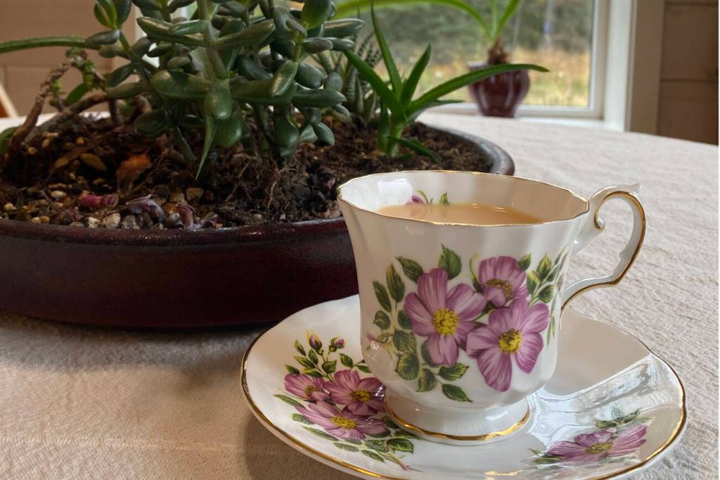 Serve in a lovely cup. Enjoy while you read the news.