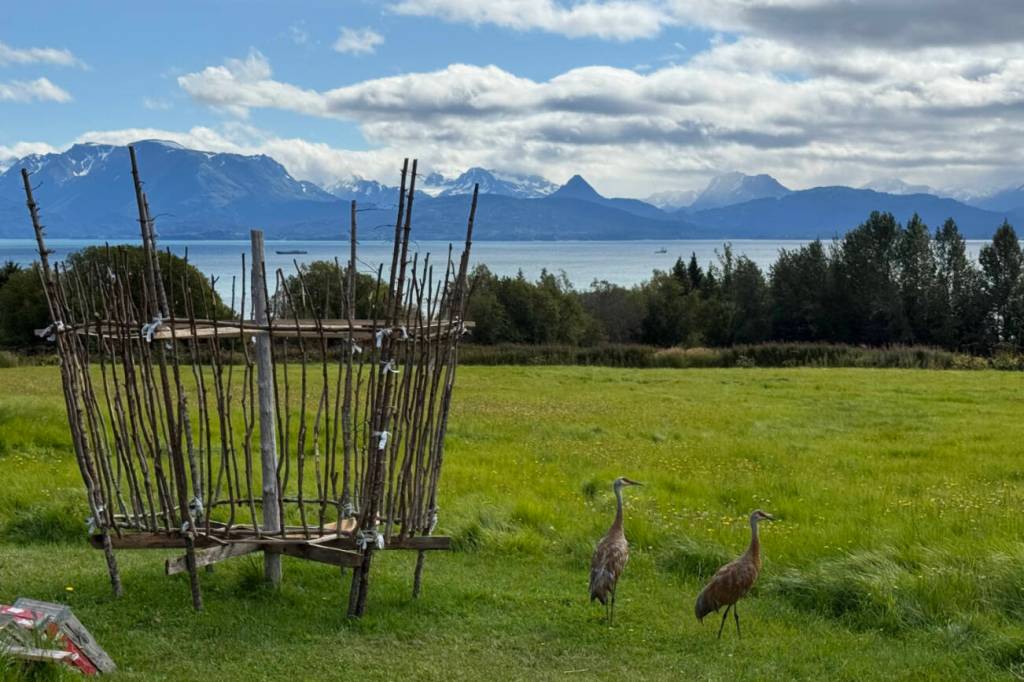 Community members can join in the construction of the woven sculpture from Sept. 1-6 from 11 a.m. to 7 p.m. daily at Mariner Park on Homer Spit Road. On Sunday, Sept. 7, the basket is slowly decorated by community members, often with remembrances for departed loved ones and other personal sentiments tucked inside and “unseen by others but respectfully held within the heart of the basket until the time of release.” Muller said that all are invited to tie a red string on the basket in memory of “stolen, missing and murdered sisters.” Additionally, a list of community members who have passed away in the past year will be present as an act of remembrance, with a pen to add names.