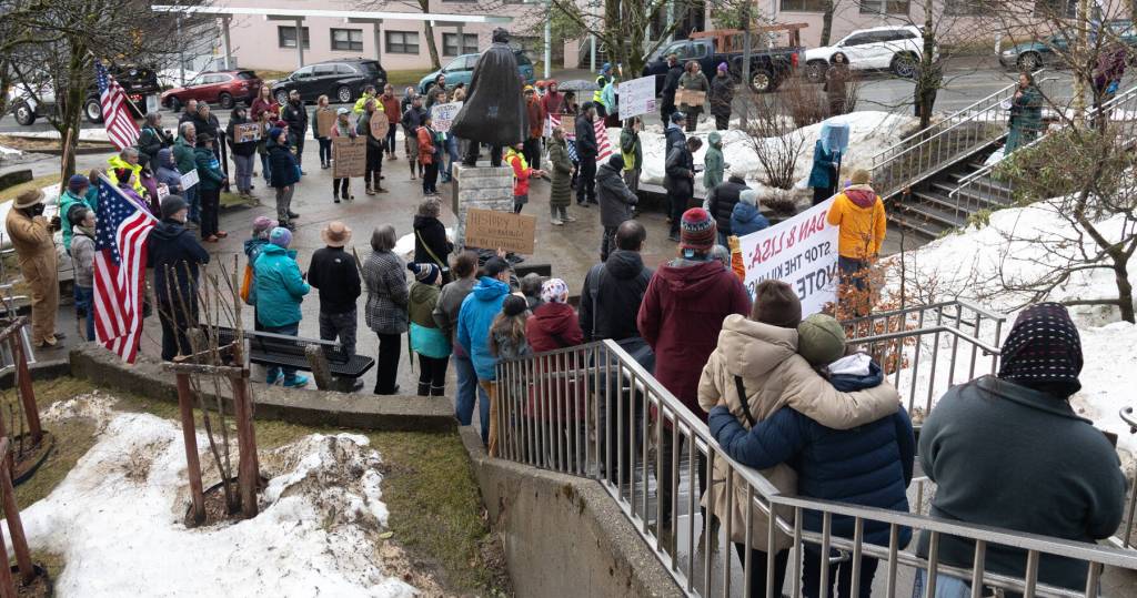 Over 200 people gathered at the Dimond Courthouse plaza last Thursday to speak out against Immigration and Customs Enforcement, mirroring similar protests around the country following two killings by federal agents in Minneapolis. The hour-long rally was peaceful, with attendees singing together, holding bags and boxes of salt and chanting, “Melt ICE.”
