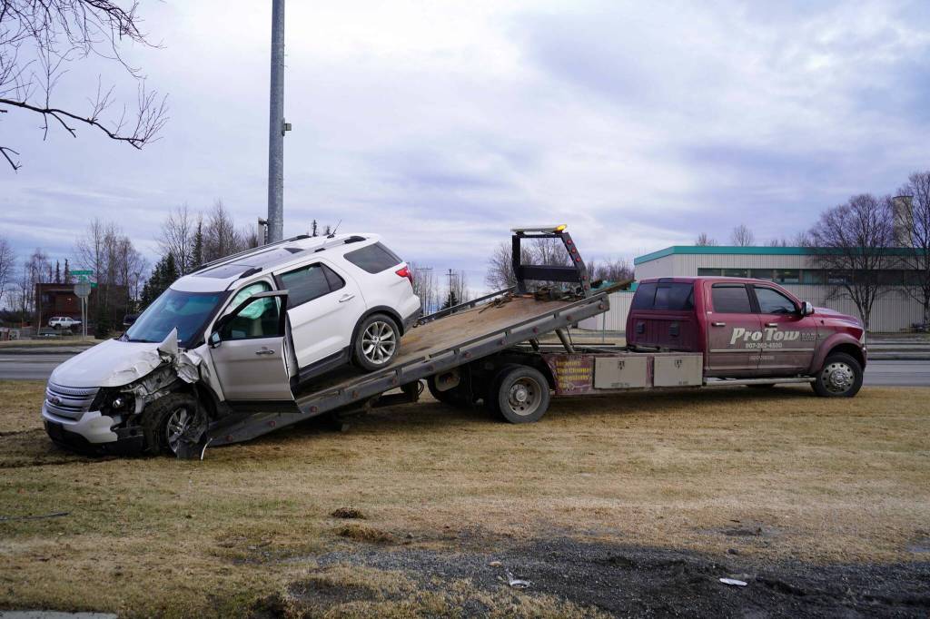 Ross wrote that the vehicle headed east from the Chamber of Commerce toward Soldotna on the Kenai Spur Highway. According to police, Hernandez turned around in the Safeway parking lot and headed west on the highway before losing control of the vehicle and crashing in front of the bank.