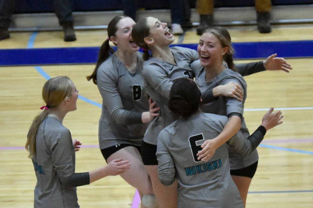 The visiting Nikiski volleyball team defeated Soldotna 29-27, 25-23, 21-25 and 27-25 on Tuesday in nonconference action.