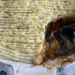 Spread the finished mashed potatoes over the turkey and vegetables in an even layer.
