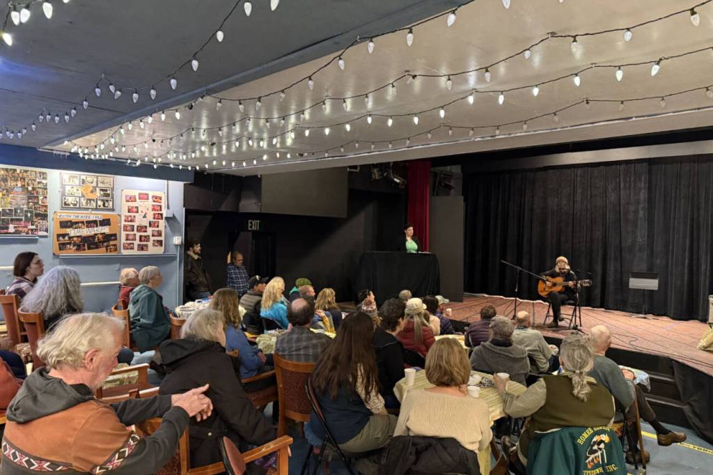 Other performers included Cristin San Roman, who played the theme music from “Howl’s Moving Castle” on the keyboard. Cathy Stingley performed a fun, crowd-engaging song about bears in tennis shoes for the “young people, kids and young at heart.” Sunrise Kilcher performed a song she wrote more than 40 years ago about the alarming rise in reliance on technology. A curious, poetic stranger by the name of Iceman performed a monologued, metered story about miner Sam McGhee.